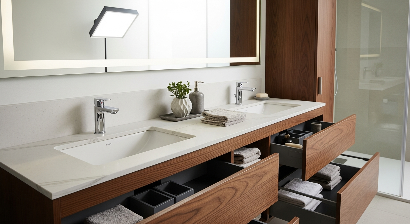 ໜ້າທີ່ຫຼັກອັນໜຶ່ງຂອງຕູ້ວາງເຄື່ອງຫ້ອງນ້ຳຄືການສະໜອງບ່ອນເກັບມ້ຽນ. ການມີພື້ນທີ່ຈັດເກັບທີ່ພຽງພໍຊ່ວຍໃຫ້ຫ້ອງນ້ຳເປັນລະບຽບ ແລະ ບໍ່ມີສິ່ງຂອງກີດຂວາງ. ຕູ້ວາງເຄື່ອງມາພ້ອມກັບທາງເລືອກການຈັດເກັບທີ່ຫຼາກຫຼາຍ, ລວມທັງລີ້ນຊັກ, ຊັ້ນວາງ, ແລະ ຕູ້ທີ່ມີປະຕູ. ບາງໜ່ວຍມີລີ້ນຊັກທີ່ເລິກເພື່ອເກັບເຄື່ອງໃຊ້ໃຫຍ່, ໃນຂະນະທີ່ບາງໜ່ວຍມີຊັ້ນວາງທີ່ສາມາດປັບໄດ້ເພື່ອເກັບເຄື່ອງໃຊ້ຂະໜາດນ້ອຍ. ການເລືອກຕູ້ວາງເຄື່ອງທີ່ມີທາງເລືອກການຈັດລະບຽບພາຍໃນເຊັ່ນ: ທີ່ແບ່ງລີ້ນຊັກ ຫຼື ຊັ້ນວາງທີ່ດຶງອອກໄດ້ ສາມາດເພີ່ມປະສິດທິພາບຂອງພື້ນທີ່ເກັບມ້ຽນໄດ້ຢ່າງຫຼວງຫຼາຍ.